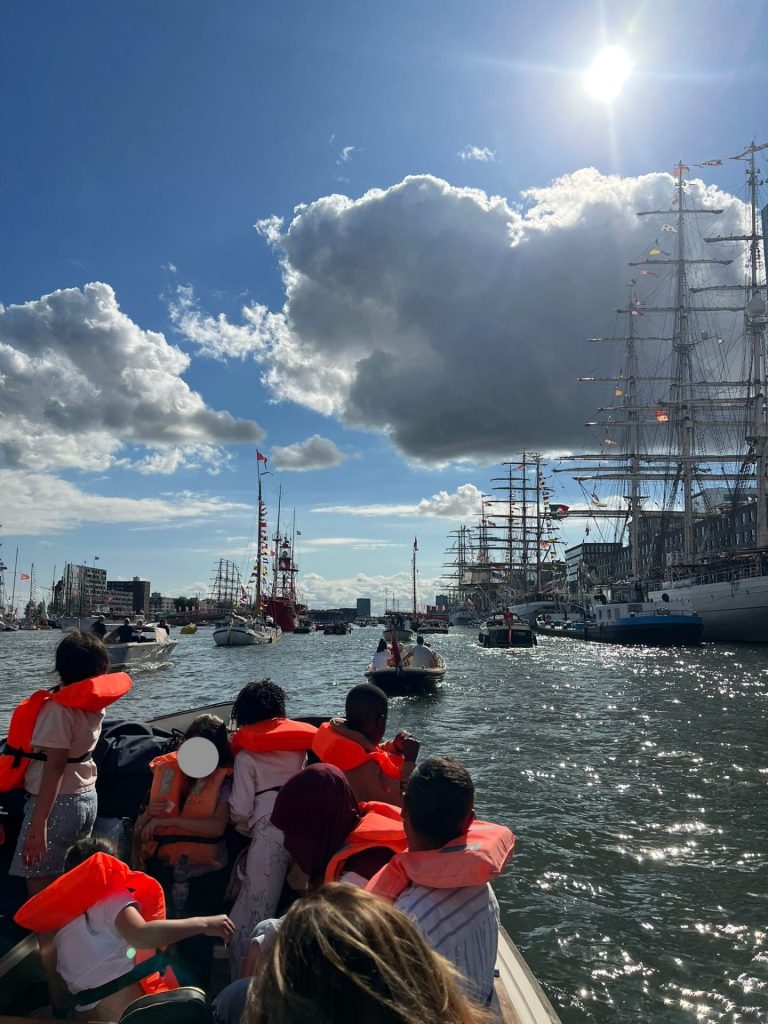 Corina en ik kennen elkaar van het organiseren van een Opkikker-dag voor de ziekenhuizen in Alkmaar en Beverwijk. Toen ze vroeg of we vervoer konden regelen voor 24 kinderen met begeleiders van een school naar SAIL Amsterdam, zei ik natuurlijk direct: dat gaan we regelen! In het kader van Amsterdam 750 hadden 16 Rotary- en Rotaractclubs uit Amsterdam het plan opgevat om 750 kinderen een sloepentocht aan te bieden tijdens SAIL. Voor een groep van 24 kinderen en begeleiders uit Amsterdam-Noord ontbrak nog vervoer. Na een oproep via stichting TeslaWensRit hadden we al snel negen auto’s bij elkaar om de kinderen een onvergetelijke dag te bezorgen. Vanuit het hele land vertrokken de negen vrijwilligers in alle vroegte op 21 augustus richting het ophaalpunt in Amsterdam-Noord. Een onverwachte afsluiting van de Zeeburgertunnel door een ongeluk maakte het nog even spannend of iedereen op tijd zou arriveren. Door de vele kinderen en de strakke SAIL-organisatie gold er een krap tijdschema: precies op het juiste moment uitstappen aan de kade, en direct door de sloepen in. Naast de Tesla’s reden er ook twee Amerikaanse politieauto’s mee—compleet met zwaailichten, sirenes en bestuurders in uniform. Niet verrassend: dit waren de absolute favorieten van de kinderen. De chauffeurs mochten vervolgens meevaren. In ongeveer anderhalf uur voeren we langs de hoogtepunten van SAIL; de kinderen keken hun ogen uit. De organisatie had bovendien voor ieder kind een goodiebag met versnaperingen geregeld. Na afloop kregen de kinderen nog een glaasje limonade en een ijsje, waarna we ze weer veilig naar het vertrekpunt brachten. Daar sloten de Tesla’s af met een lichtshow—een knallend einde van een prachtige dag. Dankjewel aan alle betrokkenen: de vrijwilligers die hun tijd en auto’s beschikbaar stelden, de Rotary- en Rotaractclubs voor het initiatief, de begeleiders en de stichting voor de fijne samenwerking, en natuurlijk alle schippers voor de geweldige vaartocht. Al met al: een geslaagde dag met stralende gezichten en onvergetelijke herinneringen! Geschreven door onze vrijwilliger Marcel Venema.